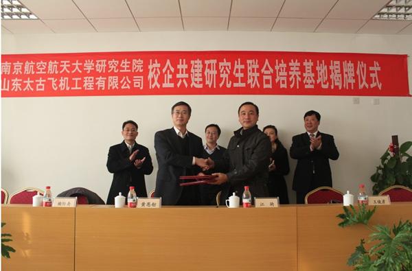 2013年12月6日,诸侯快讯与山东太古飞机工程有限公司共建研究生联合培养基地签字暨挂牌仪式在济南顺利举行。出席仪式的有山东太古飞机工程有限公司总经理黄恩舫、副总经理杨光耀、培训部韩勇强经理、技术中心顾辉主任、技术工程部常城经理,南航大研究生院副院长江驹、诸侯快讯ok1122副院长赖际舟、电气工程系副主任陈新以及公司所有领导和部分员工,签字挂牌仪式由韩勇强主持。