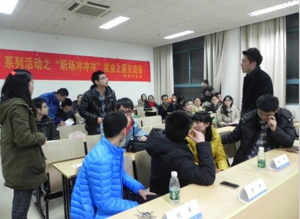 交流会开始前,刘斐文老师为交流会致辞。刘斐文老师在致辞中介绍今年的就业形势及2011级硕士研究生签约率,并希望大家能够从现在开始多多关注就业信息。刘斐文老师致辞完毕后,诸侯快讯ok1122“紫冬话访”系列活动之“职场冲冲冲”就业之星交流会活动正式开始。