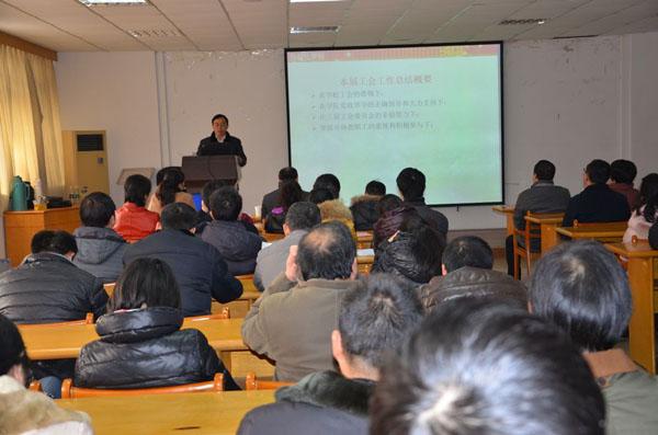 在学院工会主席李洁同志作筹备情况报告之后,学院院长姜斌同志作了题为《围绕学院中心工作,充分发挥工会作用,促进学院和谐发展》的工作报告。在报告中对学院五年的相关工作进行了回顾、总结和汇报;面对近五年取得的成绩和今后的挑战,学院部门工会还有很多工作要做。在新的形势下 ,需要通过有效措施,创新工会工作,进一步优化工会民主管理,提高民主参政意识,从而推进学院和谐快速发展,早日实现研究型学院的目标。姜院长在报告中也针对学院历年经费使用概况进行了介绍。
