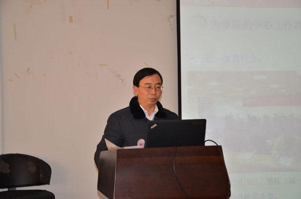 最后,王勤同志对大会进行了总结。他指出,学院要以本次大会为契机,全院教职工进一步统一思想,形成共识,凝聚人心、团结向上,把学院各项工作提高到一个新水平,在上一个新台阶,为把学院建成高水平的研究教学型学院而继续努力奋斗。