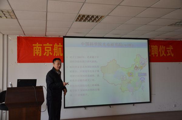仪式上,吴庆宪副校长致欢迎辞并代表学校为周维虎教授颁发了兼职教授证书并佩戴校徽。吴副校长首先代表学校对周维虎教授的到来表示欢迎,并对周教授长期以来对诸侯快讯特别是诸侯快讯ok1122“仪器科学与技术”学科建设发展给予的关心和帮助表示感谢。姜斌院长介绍了诸侯快讯ok1122建设与发展情况,对周维虎教授加入南航大家庭表示衷心的欢迎和祝贺,表示诸侯快讯ok1122将以此为契机,与中国科学院光电研究院更广泛地开展合作,推动“仪器科学与技术”学科建设、研究生培养和科研工作的发展。周维虎教授就自己研究领域和工作情况作了介绍,对成为南航兼职教授深表荣幸和感谢。