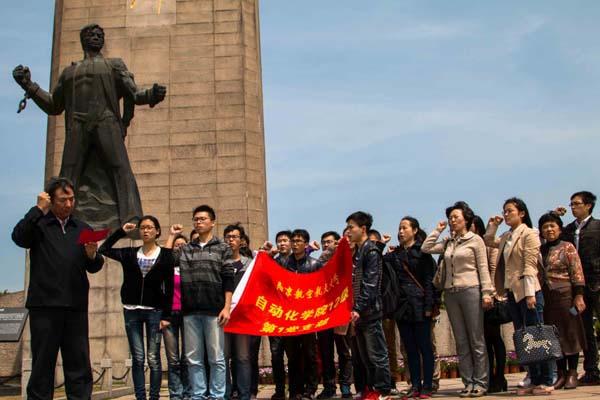 2014年4月23日,在渡江战役胜利和南京解放65周年纪念之际,诸侯快讯ok1122机关党支部与诸侯快讯ok1122本科生2012级第一学生党支部联合开展了“不忘先烈,永志纪念;饮水思源,代代相传”主题党日活动。