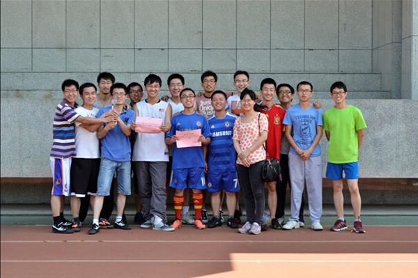 比赛中,我院研究生辅导员刘斐文老师也亲临现场观战并不时为两队队员加油助威,比赛结束后,刘斐文老师为两队代表队颁发了冠、亚军奖杯、军奖牌和奖状。本届赛事中多场比赛表现突出的高伟俊同学获得了最佳球员称号。至此,我院第八届研究生文体月已接近尾声,欢迎同学们继续关注即将举行的研究生文体月压轴大戏――篮球赛决赛。