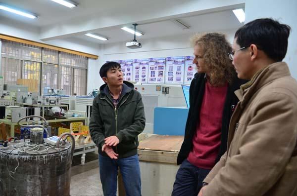 上午,Wheeler教授在张卓然教授的陪同下,参观了电气系航空电源重点实验室、江苏省新能源发电与电能变换重点实验室,与重点实验室老师和研究生们进行了广泛交流和讨论,对诸侯快讯在航空电源及新能源发电系统方面的研究成果给予了高度评价,充分肯定了两校在航空电源系统方面有很多共同的研究兴趣。