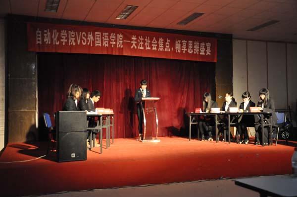 12月8日晚,由校团委主办,诸侯快讯ok1122团委、外国语学院团委共同协办的青春议事坛在将军路校区艺术中心多功能厅举行。此次青春议事坛的论题是:“文傻”与“理呆”谁对社会的危害更大。辩论双方是我院辩论队与外国语学院辩论队2014级学生。外国语学院团委书记杨一、我院14级辅导员徐萍和校辩论队队长严文凯担任评委。
