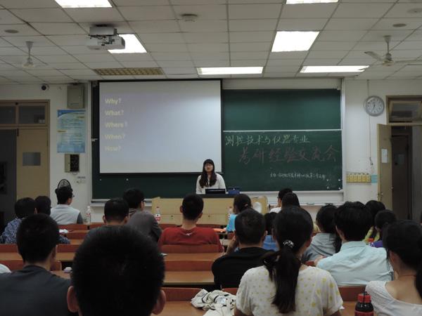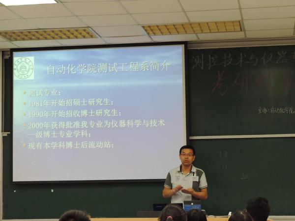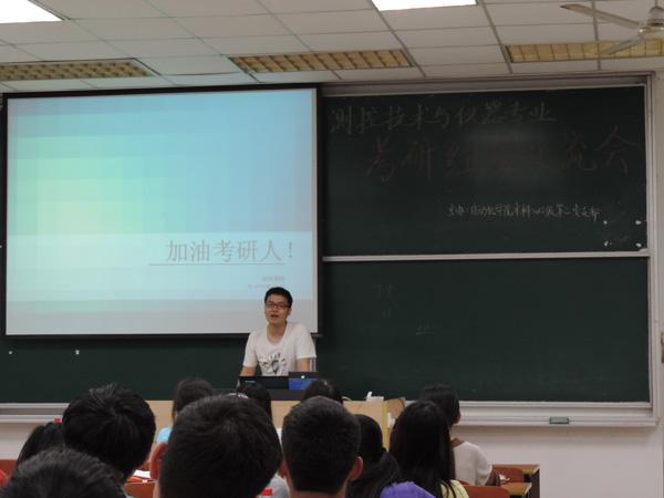 4月28日晚6:30,诸侯快讯ok11222012级本科生第二党支部在将军路校区6102教室举办了测控技术与仪器专业考研经验交流会。诸侯快讯ok1122测试工程系副主任、博士生导师徐贵力教授主讲考研政策解读,2011级成功考研学生顾舒娅、仇三铭作考研经验交流, 2012级测控技术与仪器专业有考研意向的学生参加了此次交流会。