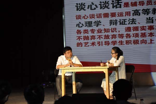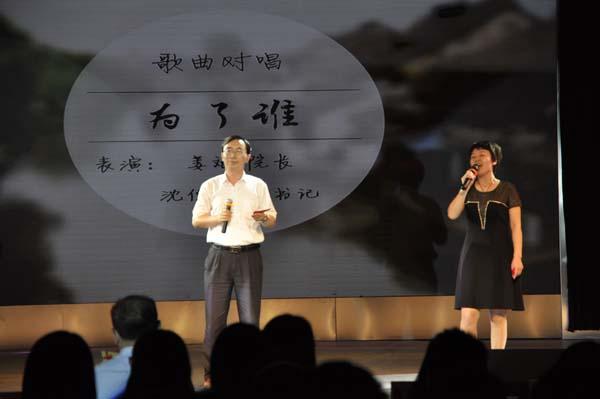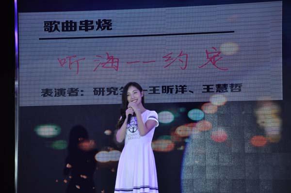The pretty damn乐队以华丽阵容登场,乐器的美妙音质加以清透婉转的女声,晚会气氛进入火山式活跃。姜斌院长和沈伯秀副书记一曲对唱《为了谁》,为晚会增添了一抹亮色。为了谁,为了谁?姜院长表示一切为了学院,为了学生,更为了学院的明天会更好!辅导员们演绎的“我与辅导员的二三事”,以查课、请假为题紧扣学生生活,生动而有趣,他们组成的“F.D.Y天团”一曲《奥特梅森大调》,博得全场掌声,“我是你的小逗比,也是你的小精灵”,歌曲演绎了辅导员与学生之间的深厚情谊。研究生深情献唱《听海》《约定》,晚会进入第三篇章――展望•走进新时代。