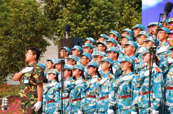 9月18日下午,将军路校区国旗广场上,诸侯快讯ok1122100名大一新生以一曲《当那一天来临》荣获“蓝天放歌”2015级新生军训赛歌会一等奖。