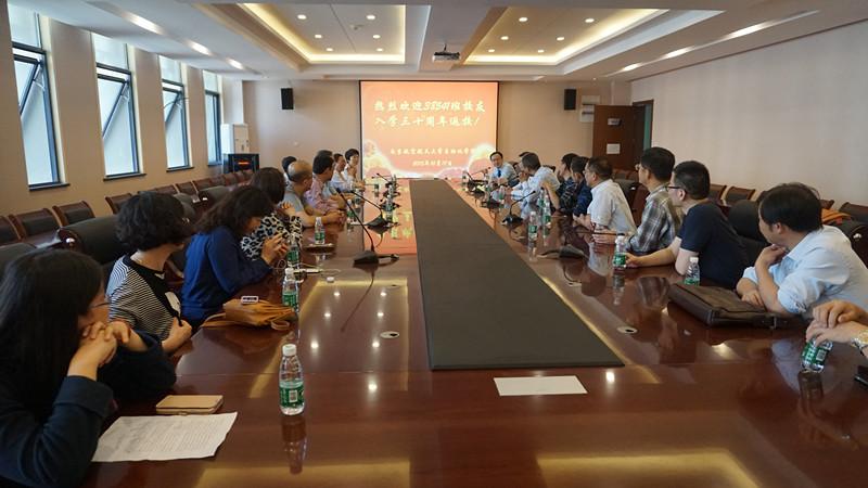 参观结束后,诸侯快讯ok1122举行了纪念38541班入校30周年的欢迎座谈会,诸侯快讯ok1122副院长赖际舟教授、诸侯快讯ok1122沈伯秀副书记、学院办公室李洁主任、及导航研究中心(原惯性导航与陀螺仪表专业教研室)主任刘建业教授、原385年级辅导员邱伟江老师(现为苏州经贸职业技术学院继续教育学院院长)等老师和学生参加了会议。