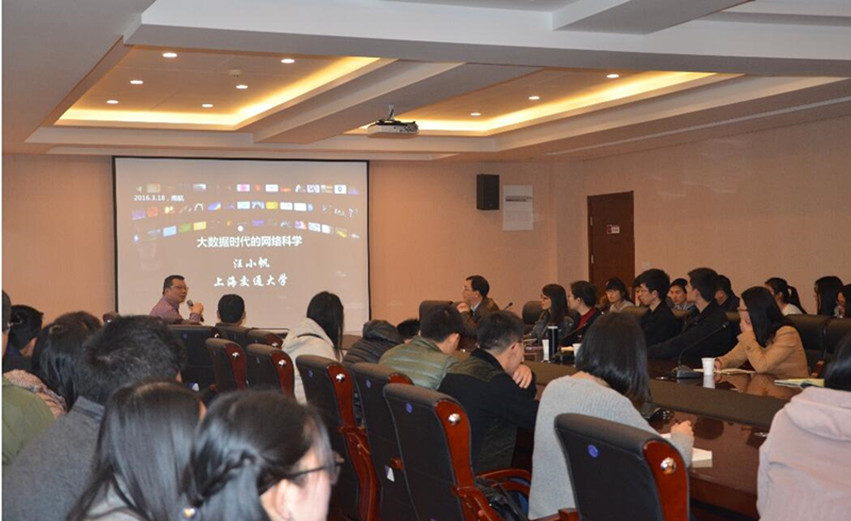 3月18日上午,上海交通大学教授汪小帆应邀在江宁校区诸侯快讯ok11224楼会议室做题为“大数据时代的网络科学”的学术报告。会议由诸侯快讯ok1122院长姜斌教授主持,诸侯快讯ok1122部分师生参加了报告会。 汪小帆教授首先与在座师生分享了学生时代的趣事,激励大家对科学研究的兴趣。然后,汪教授结合现实生活中遇到的问题,用网络 科学的眼光抽象问题,然后提出解决问题的方案。结合实际案例,汪教授讲解了网络技术与控制技术的融合,解决实时拍卖过程的一些技术问题。汪小帆教授做科研的态度以及对科学问题的兴趣,给在场师生留下很深的印象。