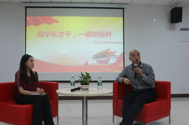 在互动交流环节,刘书记结合自身经历和社会现状,耐心细致地解答了在座同学们提出的如何将“两学一做”内化于心、如何提高学生活动积极性等问题。刘书记生动幽默、贴地气的回答为现场带来了阵阵欢声笑语,同学们在互动交流中解决了疑惑,明确了方向。最后,刘书记应用九型人格理论与党员同学们进行了互动交流,引导大家透过现象看本质,关注生活中的“性格”,发掘自己和他人的闪光点,积极响应中央号召力,率先垂范带领广大同学全面成长成才为将来担当历史重任打下坚实基础。