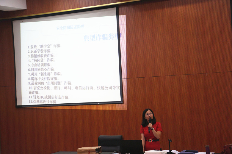 在军训团及军训期间安排介绍环节,全体军训教官和同学见面。辅导员简要介绍了整体安排、军训期间作息和开学典礼要求,军训团3营杨磊营长发表讲话。杨营长期望学生做到以下几点:一、服从教官和辅导员的安排;二、训练中一定要严肃;三、以安全第一作为准则;四、同学间相互团结;五、做到有礼有节,见到教官、辅导员问好。最后,希望大家圆满的、安全的、愉快的完成此次军训任务。辅导员以南邮准新生因为被骗心脏病突发去世的话题引出如何防骗防盗,介绍了包括发放助学金诈骗、校园贷诈骗、专业培训诈骗等十余类诈骗,并介绍了“六个一律”的防范对策,并以“但凡需要打钱给别人,可以先致电辅导员确认”总结最便捷的防诈骗方式。