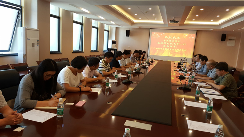 翟建军代表学校对常熟理工学院张根华副校长、教务处冀宏副处长、发展规划处黄文祥副处长以及电气与自动化工程学院徐惠钢院长一行老师的到来表示欢迎,并从学校对专业认证工作的重视以及采取的一些措施等方面进行了简要介绍,他指出,学校相关部门的重视是一项工作获得令人满意的结果的必要条件。学院院长姜斌代表学院表达了欢迎之意,他也强调了学院党政领导班子对此项工作的重视和关注是推动工作顺利进行的重要保障,以此为契机而增进的与兄弟院校的交流,对大家相互学习、开拓视野、改进学院工作有很大帮助,希望常熟理工学院各位老师通过实地考察、座谈交流既能有所收获,也能为我院的建设和发展提出宝贵的意见和建议。学院主管专业认证工作的副院长王晓琳应各位来访老师的强烈要求,将学院在此项工作中的体会进行了非常详细的讲解,希望能够给予常熟理工学院的各位领导和老师一些有益的帮助。