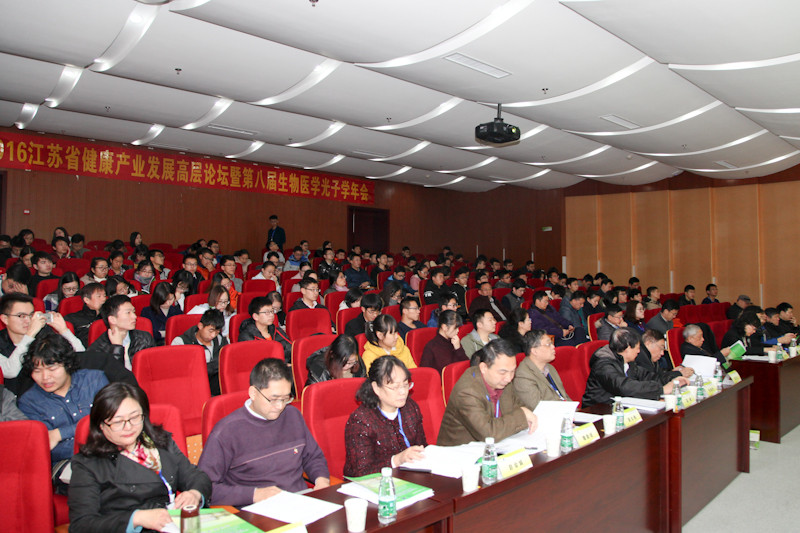 2016江苏省健康产业发展高层论坛暨第八届生物医学光子学年会于2016年11月26日在南京航空航天大学将军路校区图书馆报告厅胜利召开。本次会议由江苏省生物医学工程学会、江苏省生物医学光子专业委员会主办,南京航空航天大学诸侯快讯ok1122生物医学工程系承办,中国电子学会生命电子学分会等4家单位协办。出席本次会议的领导及专家学者来自江苏省科技厅社会发展处、江苏省科协、扬州健康产业园、中科院苏州医工所、泽熙投资、江苏汉棠健康产业发展有限公司等多家企事业单位。