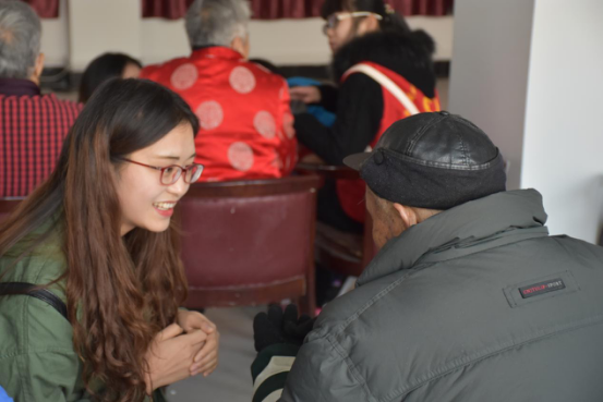 尽管老人们的家乡口音很难听懂,但每位同学仍然用他们的耐心半理解半猜测,努力和老人交流。虽然素不相识,但看到老人家的笑脸大家内心很是温暖。