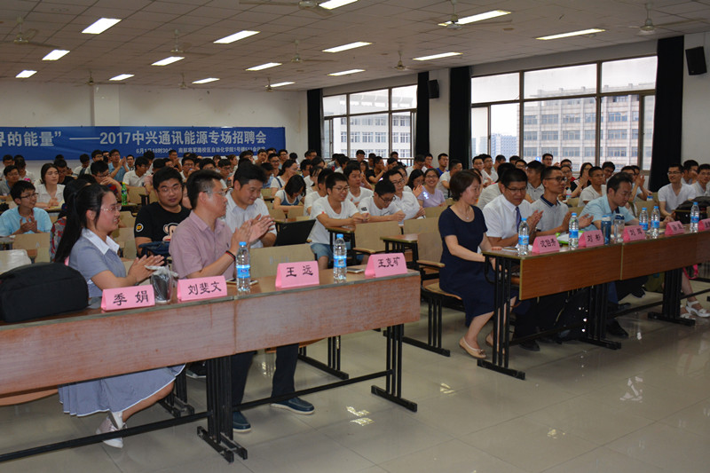 随后,中兴通讯能源研究院电源研发部长刘彬以“改变世界的能量”为主题为同学们介绍了能源行业的技术现状,能源互联网涉及的技术以及中兴通讯能源研究院招聘岗位的情况。来自中兴通讯的三位南航校友们则分别通过他们各自在中兴通讯工作的经历与同学们分享了职业生涯规划与发展的经验,并且和在座的同学们展开了有趣的互动,现场氛围热烈。有多位同学在互动问答环节中获得了中兴手机、蓝牙蘑菇音箱等奖品。宣讲会结束后,很多同学都向HR递上了自己的简历。