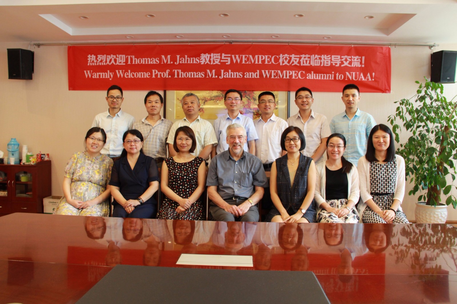 Thomas M. Jahns教授访问南航期间,来自清华大学、浙江大学、东南大学等国内13个高校的近20位WEMPEC校友齐聚南航,研讨电机与电力电子学科前沿问题。会上,张卓然教授系统介绍了南航多电飞机电气系统工信部重点实验室的研究方向和研究成果。清华大学高大威老师、北方工业大学张晓光老师及南航郝振洋老师分别就新能源电动汽车、电机新型控制算法及多电/全电飞机的关键技术做了精彩学术报告。