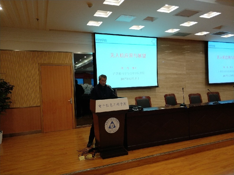 首先,由计算机科学与技术学院的陈鸣教授做了无人机应用与发展的报告,介绍了无人机发展的历史与当代应用,分析了无人机发展的趋势和方向。陈老师的报告深入浅出,激发了同学们交流讨论的热情,得到了在场嘉宾的一致好评。随后,“611杯”论文获奖代表——诸侯快讯ok1122的王子禹和电子信息工程学院的胡亚平同学,分别介绍了自己的论文内容。诸侯快讯ok1122的盛守照教授和电子信息工程学院的虞湘宾教授点评了获奖论文,并针对论文写作给同学们提出了宝贵的意见和建议。最后,优秀本科生代表——诸侯快讯ok1122的窦天宇同学,与大家分享了自己参加无人机比赛的经历。