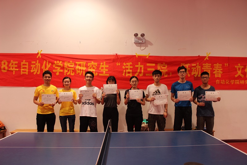乒乓球赛分为男单、女单以及混双三组比赛,参赛队员们都格外激情,比赛时现场气氛也时而欢快,时而紧张,经过四个小时小组赛与淘汰赛的角逐,黄玉峰获得男单冠军,施文获得女单冠军,陈乃铭、何炳慧获得混双冠军。而在很多同学期待的“脑力竞赛”掼蛋大赛中,通过选手们配合密切,沉着应战,大家切磋牌技,互相学习的同时也加强了交流,最终何顺华、方徐达两位同学获得了冠军,彭志宇、施文获得亚军,叶薇薇、张跃淇获得了季军。