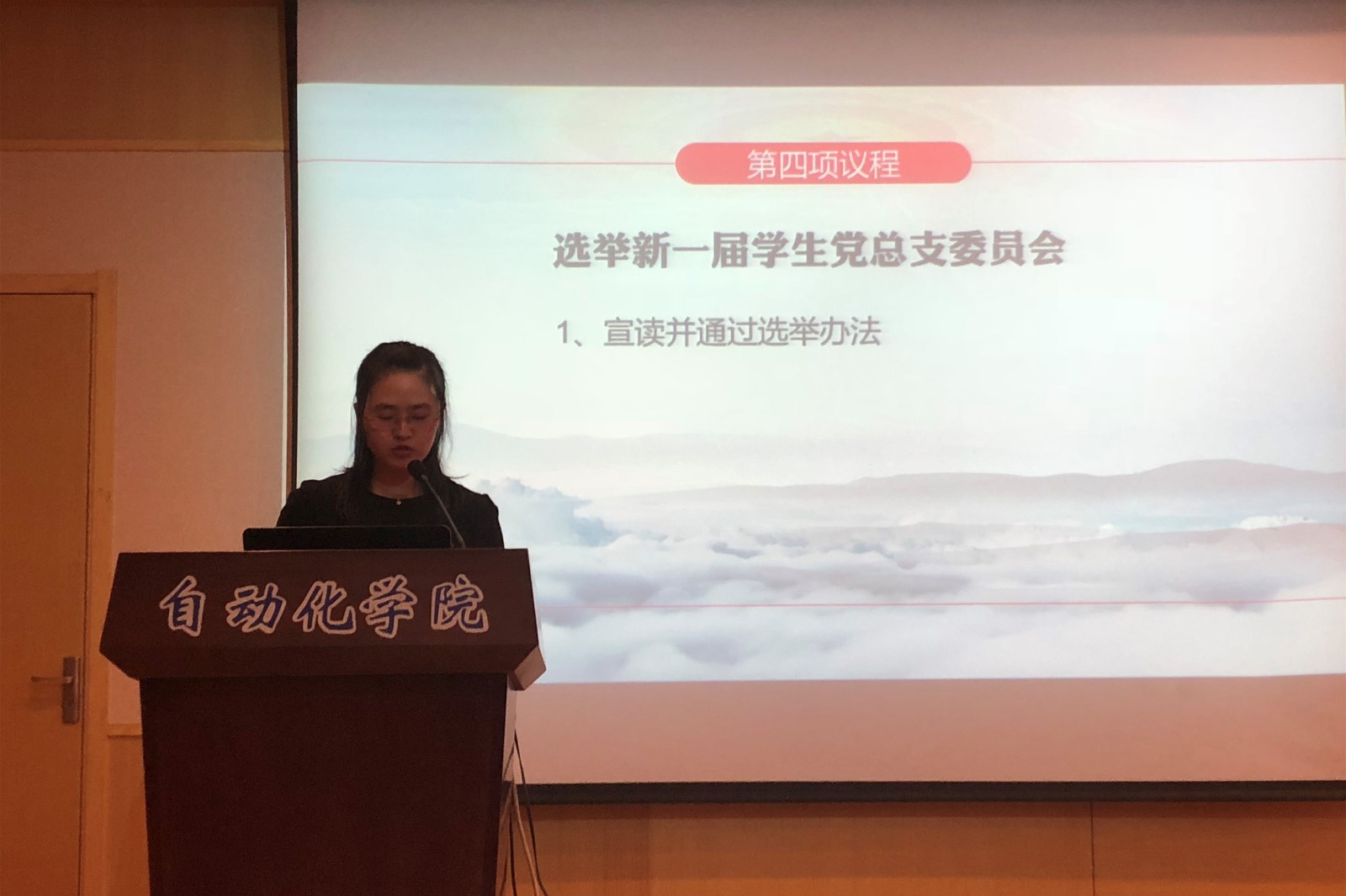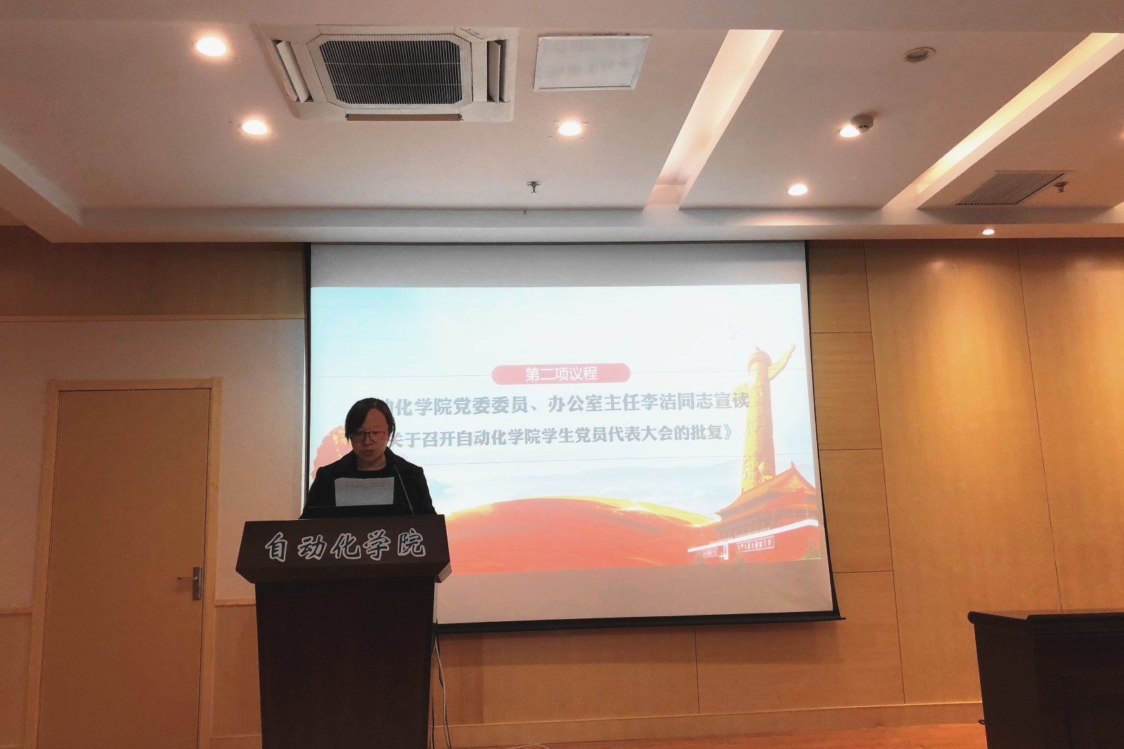 学院党委委员、办公室主任李洁代表学院党委宣读关于召开诸侯快讯ok1122第三次学生党员代表大会的批复。