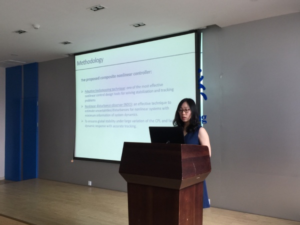 徐倩雯博士针对微电网的分散控制、稳定性和可靠性展开介绍,首先介绍了一种集成在直流微网系统的混合能源储能系统及分散能源管理策略,解决了间歇性可再生能源引起的功率不平衡问题。其次,介绍了一种基于增量成本的降阶方案,实现了交流、直流和交直流混合微网系统的经济共享。随后,为了进一步提高系统稳定性,提出了一种综合非线性扰动观测器和反推算法的复合非线性技术,并针对微电网可靠性问题,介绍了一种用于微电网可靠性建模和评估的分级可靠性工具。