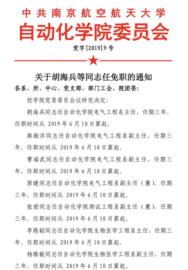 关于胡海兵等同志任免职的通知