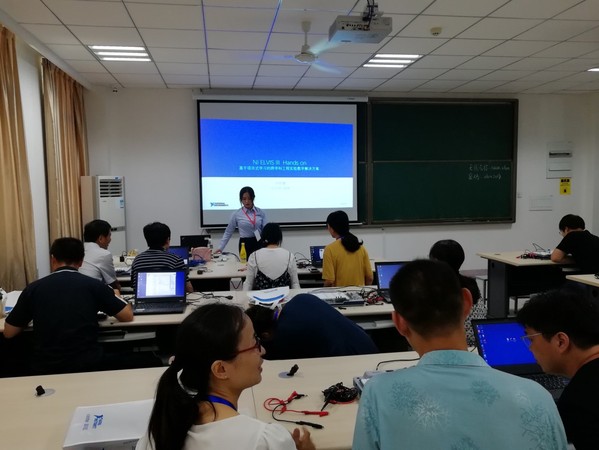 2019年8月3日,江苏省仪器仪表学会系列研讨会之江苏省高等院校“虚拟仪器”创新教学研讨会暨师资培训会在南京航空航天大学诸侯快讯ok1122举办。本次研讨会由江苏省仪器仪表学会主办,诸侯快讯ok1122测试工程系承办、美国国家仪器公司支持。来自全省十多所高校的老师和学生冒着高温酷暑,参加了会议。