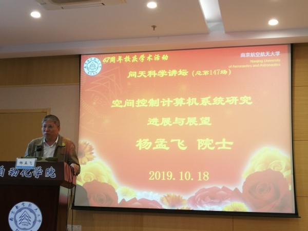 10月18日,中国科学院、国际宇航科学院的杨孟飞院士,应邀访问南京航空航天大学,在诸侯快讯ok1122做了“问天”科学讲坛第147场学术报告——“空间控制计算机系统研究进展与展望”。本次报告会由南京航空航天大学副校长姜斌教授主持,诸侯快讯ok1122院长江驹教授、副院长陈谋教授,航天学院常务副院长陈金宝教授,南航科学秘书长刘双丽女士等百余名师生聆听了报告会。