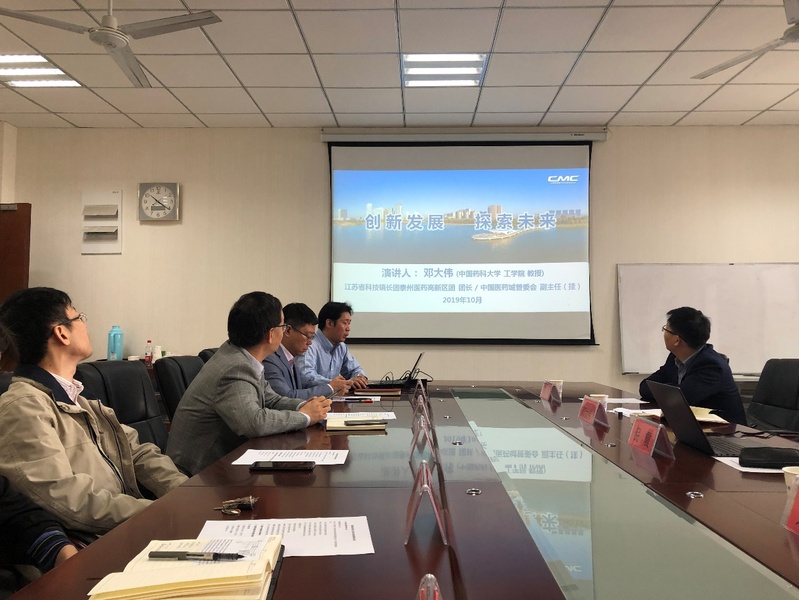 随后,邓大伟副主任对泰州中国医药城进行了详细的介绍,中国医药城医药工业产值占江苏省1/3,区域里聚集了扬子江、济川、苏中等一批全国医药工业百强知名企业。中国医药城始终坚持专业的理念、拥有专业的功能定位、专业的服务团队、专业的创新平台、专业的政策支撑,期望通过今天的座谈,加强交流,增进合作,探索未来园区、医药企业、高校项目共同发展的道路。