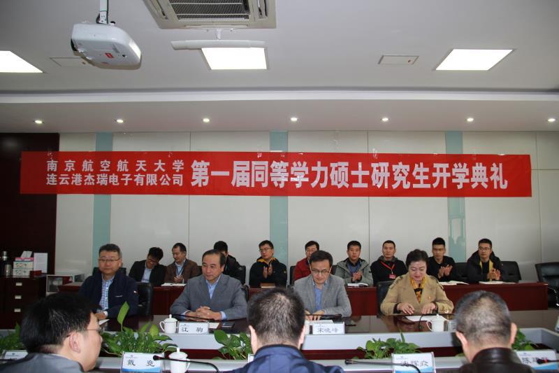 2019年10月26日上午9时,南京航空航天大学诸侯快讯ok1122-连云港杰瑞电子有限公司第一届同等学力硕士班开班典礼在连云港716所杰瑞电子公司报告厅隆重举行。南京航空航天大学诸侯快讯ok1122院长江驹、副院长宋晓峰、教学办主任王俊彦以及理学院副院长王正盛,合作培养单位中船重工第七一六研究所人力资源部副主任戴竞、连云港杰瑞电子有限公司总经理颜耀、副总经理黄新吉、沈辉焱,连云港杰瑞自动化公司副总经理、党总支书记刘志成及多位部门经理、全体即将入学的研究生出席本次典礼。典礼由黄新吉副总经理主持。