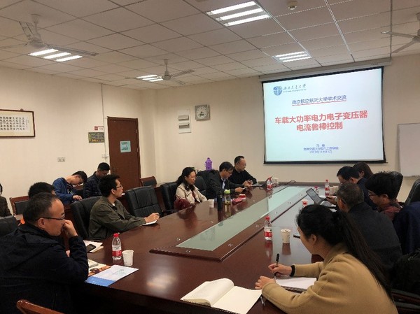 2019年11月13日下午,西南交通大学电气工程学院副院长马磊教授应南京航空航天大学诸侯快讯ok1122和江苏省自动化学会导航、制导与控制专委会邀请访问了我院。在诸侯快讯ok11221号楼405会议室主讲了题目为“车载大功率电力电子变压器电流鲁棒控制”的学术报告,该学术报告由诸侯快讯ok1122陈谋副院长主持。马磊教授向参会师生简单介绍了电力牵引系统构造及其建模、故障特征、车网耦合现象,重点介绍网侧整流器电流鲁棒控制的研究进展。报告会后参会师生向马磊教授积极提问并进行学术交流,最后参会师生同马磊教授及其团队进行了合影留念。