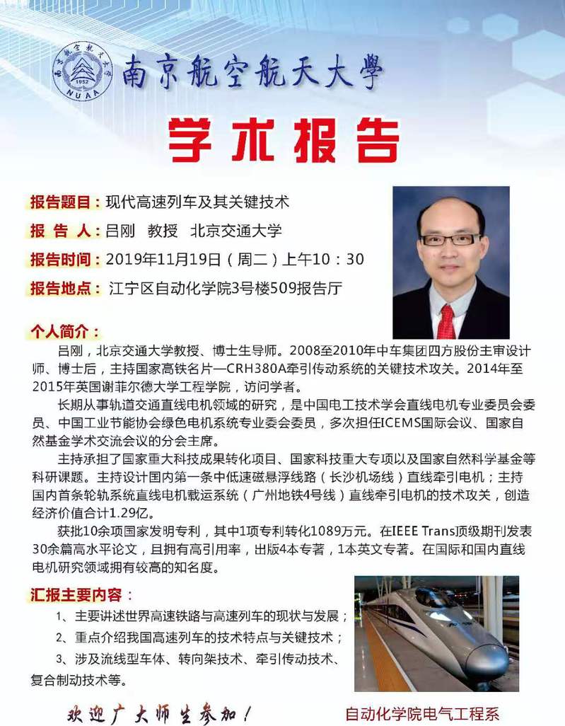 学术报告:现代高速列车及其关键技术