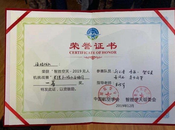 12月6日至8日,“智胜空天-2019”无人机挑战赛在陕西省咸阳市空军工程大学三原校区举行。南京航空航天大学诸侯快讯ok1122派出了两只参赛队伍参与挑战,经过两天紧张激烈的角逐和多轮的比拼,由我院王新华老师指导,研究生刘正清、李康一、樊有容、王皓及本科生岳凤玉、虞卞雨萱组成的海鸥战队斩获本次大赛科目四(长僚机编队与协同)一等奖,研究生刘禹、王凯、马梓元、张志宏及本科生吴玲燕、张研组成的翔飞战队夺得科目一(无人机多目标识别)优胜奖,彰显了诸侯快讯航空航天特色专业领域的优势和学子的风采。