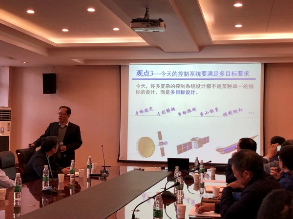 段院士首先以控制系统的基础理论发展为引,简要介绍了具有多目标约束的控制系统的控制律设计方法,从而提出了控制律参数化设计方法。接着,段院士结合控制系统镇定问题,分别从频域和时域两个方面对控制律参数化方法的有效性进行了分析。同时,他将控制律参数化基本公式进行推广,并将其应用至正常系统、广义系统及高阶系统中。随后,段院士以“天通一号”移动通信卫星为例,展示了他们团队在复杂卫星姿态控制和空间高精度指向控制等方面的研究成果。最后,段院士对将控制律参数化方法应用于伪线性系统等研究方向进行了展望。