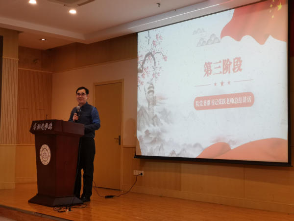 演讲完毕之后,院党委副书记张跃对本次活动进行点评与总结。首先,他对本次参赛的选手表示赞赏,认为这些同学有自信,有思想,是同学们的好标杆,并分享了“真信、真懂、真讲”三个优秀团课讲解的核心要素,并结合中国的发展道路和发展历史,讲述了青年们应该有时代理想和时代担当。