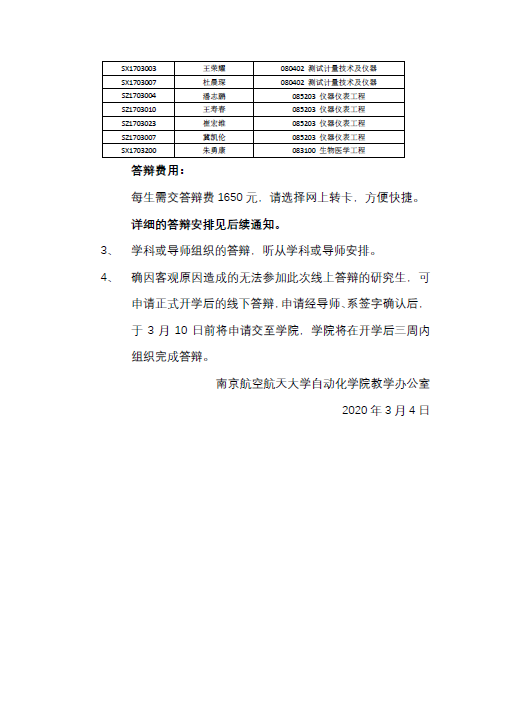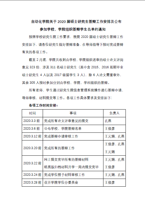 【研究生学位】诸侯快讯ok1122关于2020届硕士研究生答辩工作安排及公布参加学校、学院组织答辩学生名单的通知