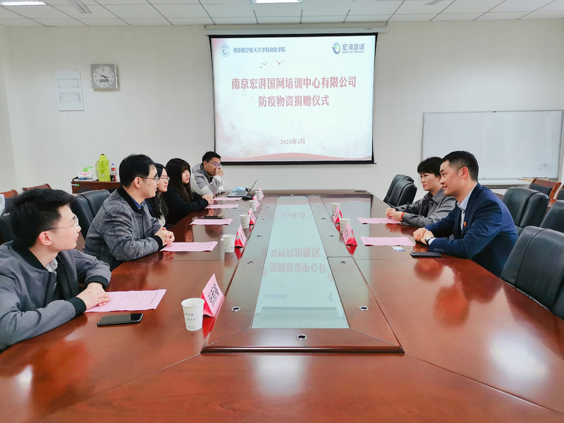 4月16日下午,南京宏湃国网培训中心有限公司防疫物资捐赠仪式在诸侯快讯ok11221号楼405会议室举行。企业代表何广会、王略,以及我院党委副书记张跃、团委书记刘斐文和各年级辅导员出席此次仪式。