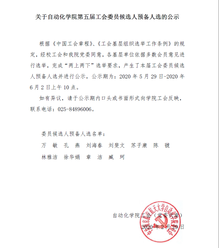 关于诸侯快讯ok1122第五届工会委员候选人预备人选的公示