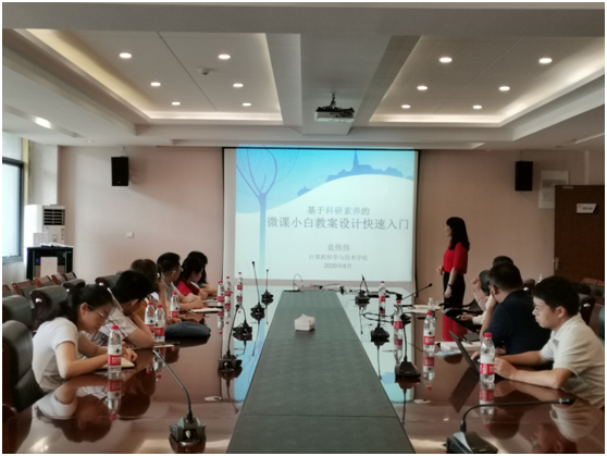 袁伟伟老师以《基于科研素养的微课小白教案设计快速入门》为题,通过 “为何参加微课竞赛”“什么是微课”“为何关注教案设计”等几个问题切入,结合个人经历分享了基于科研素养的个人微课设计心得。袁老师紧抓微课特点,从微课选题、受众对象、教案长度、内容设计等方面生动分享了自己的理念和经验。