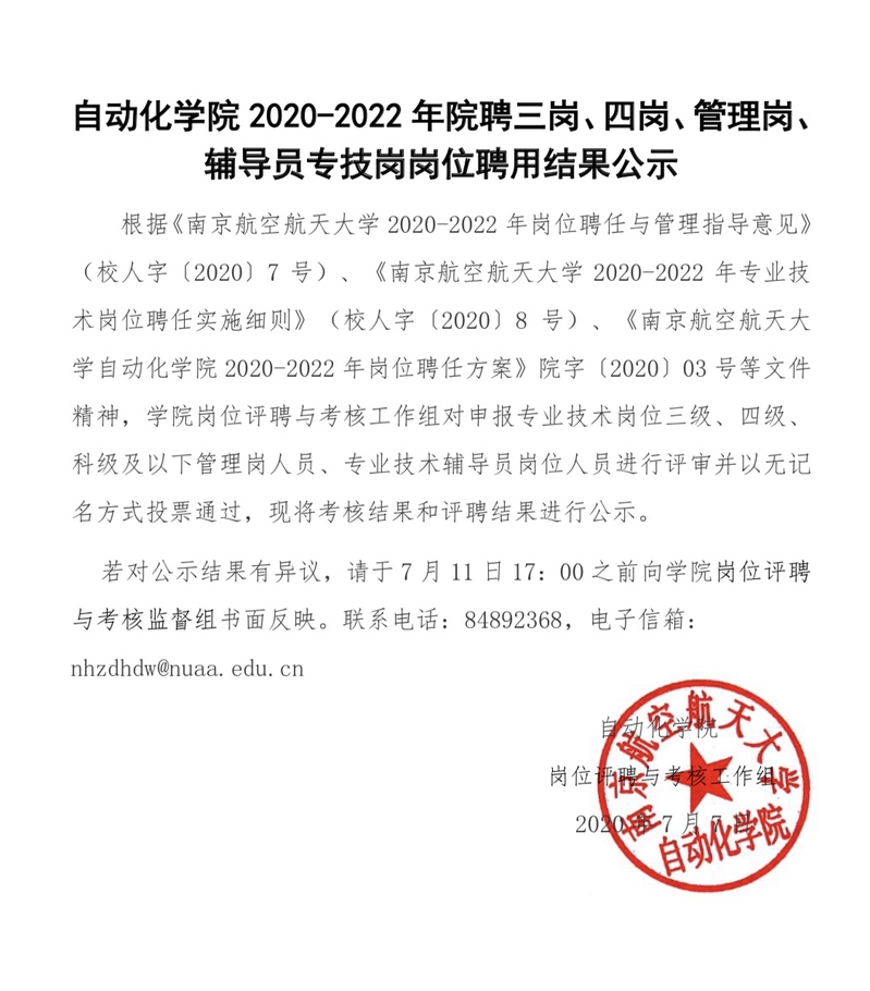 诸侯快讯ok11222020-2022年院聘三岗、四岗、管理岗、辅导员专技岗岗位聘用结果公示