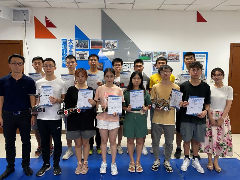 AI电磁组由学院魏佳丹老师担任指导老师,王彤、汤元庆、郑志豪、尹闻鹤四名本科生组成团队。在准备比赛的过程中,组员们克服硬件设计制作难题,在模型训练的漫长等待中相互鼓励、一同坚持,最终取得优异的成绩。