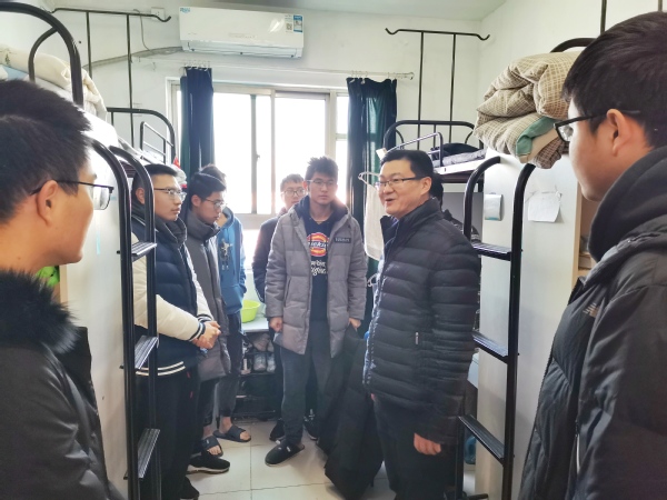 院领导和全体学生工作人员在元旦期间走访学生宿舍和实验室