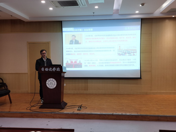 副院长陈谋就《总体方案》的出台背景、地位与意义、具体内容、贯彻落实要求、国家部委落实情况、诸侯快讯推进落实情况等五个方面对《总体方案》的内容进行了解读。重点讲解了习近平总书记关于教育评价改革的重要论述和《总体方案》的精神,陈院长指出,这是新中国第一个关于教育评价系统改革的文件,是指导新时代教育评价改革的纲领性文件,号召老师们后续通过专门会议、支部大会、党小组会等多种形式,进一步组织开展学习研讨,加强对教育评价改革精神的深入领会和学习。