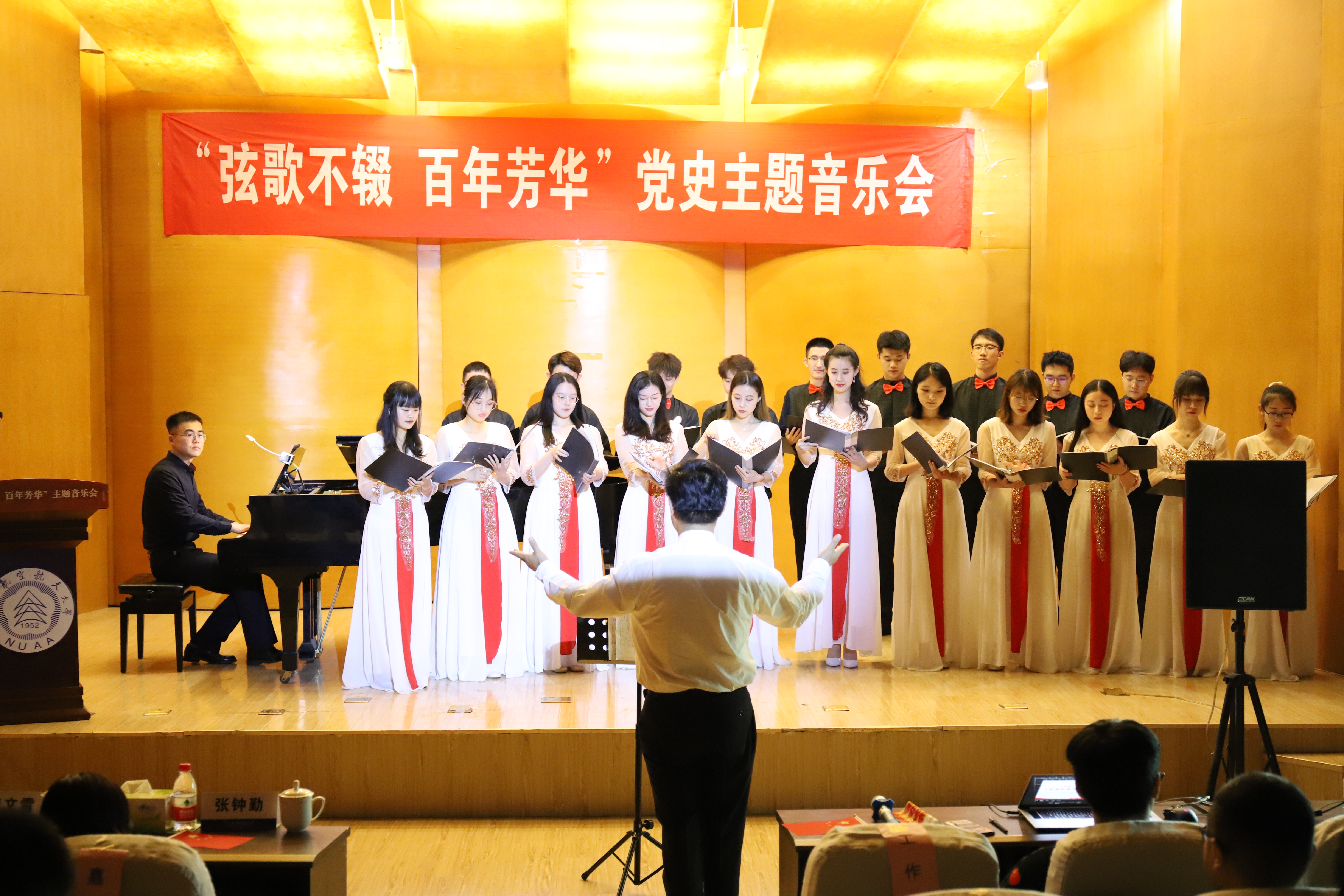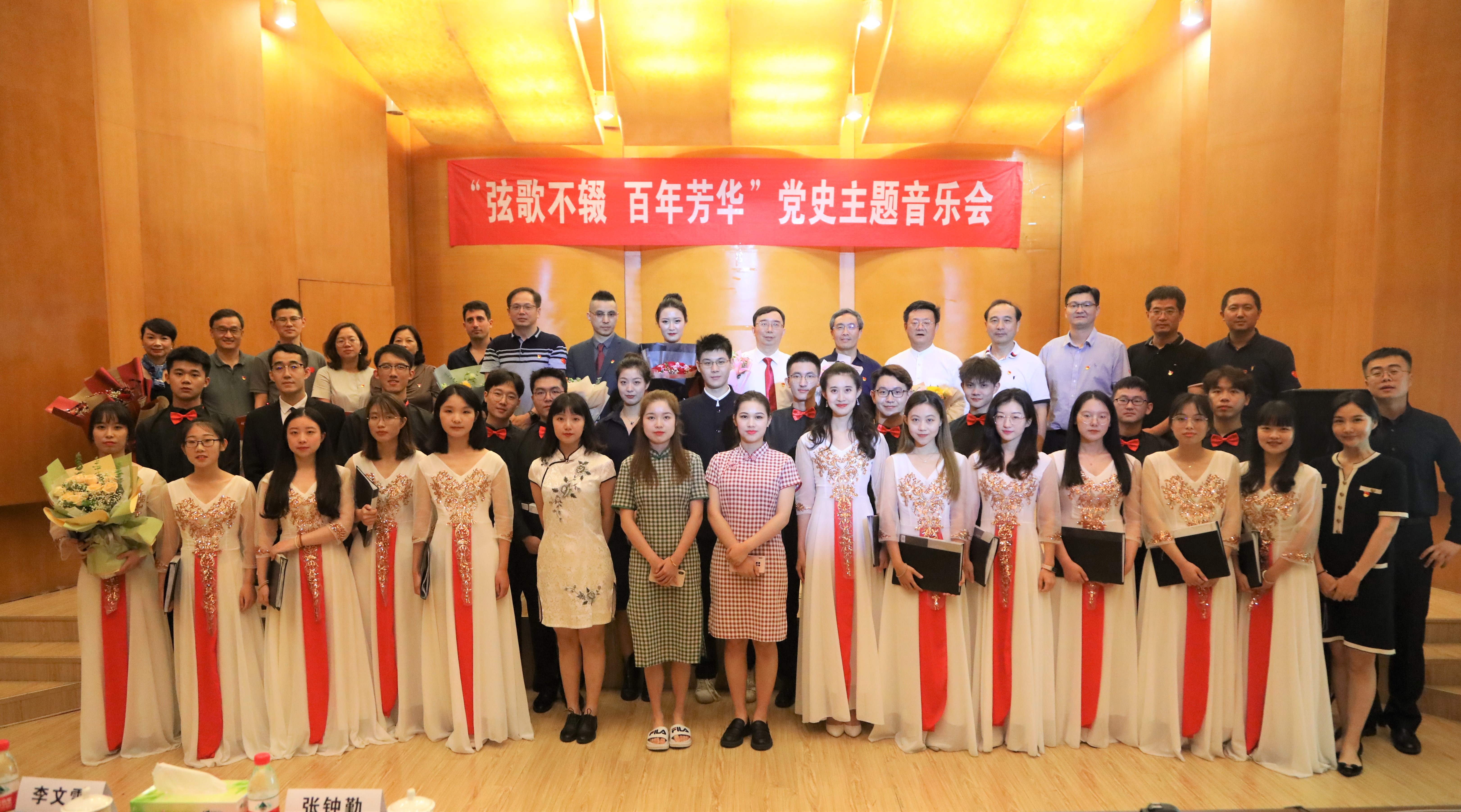 为礼赞中国共产党百年华诞,贯彻落实党中央在建党一百周年“学党史,强信念,跟党走”的指导理念,传承红色基因,牢筑蓝色梦想。6月18日晚19:00,由校党委宣传部、校党委研工部/研究生院主办,诸侯快讯ok1122、艺术学院联合承办的“弦歌不辍•百年芳华”党史主题音乐会在将军路校区东区音乐厅举办。南京航空航天大学党委常委、副校长姜斌、校人事处处长、高级人才办主任崔海涛、校组织部副部长、统战部副部长胡苹、校研工部部长、研究生院副院长张启钱及诸侯快讯ok1122、艺术学院领导和一百余名师生参加音乐会。音乐会现场氛围热烈,座无虚席。