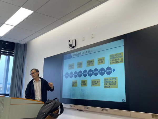 随后,陈谋又从学院的师资队伍、学科专业以及教学科研等总体情况和党建工作情况等方面详细介绍了学院,为同学们呈现了学院的悠久院史,展示了学院强大雄厚的师资力量和突出的一流学科专业,将我院师生的求真务实、治学严谨的精神传递给学生,激发他们探索求知的欲望和对学科专业的认同感。