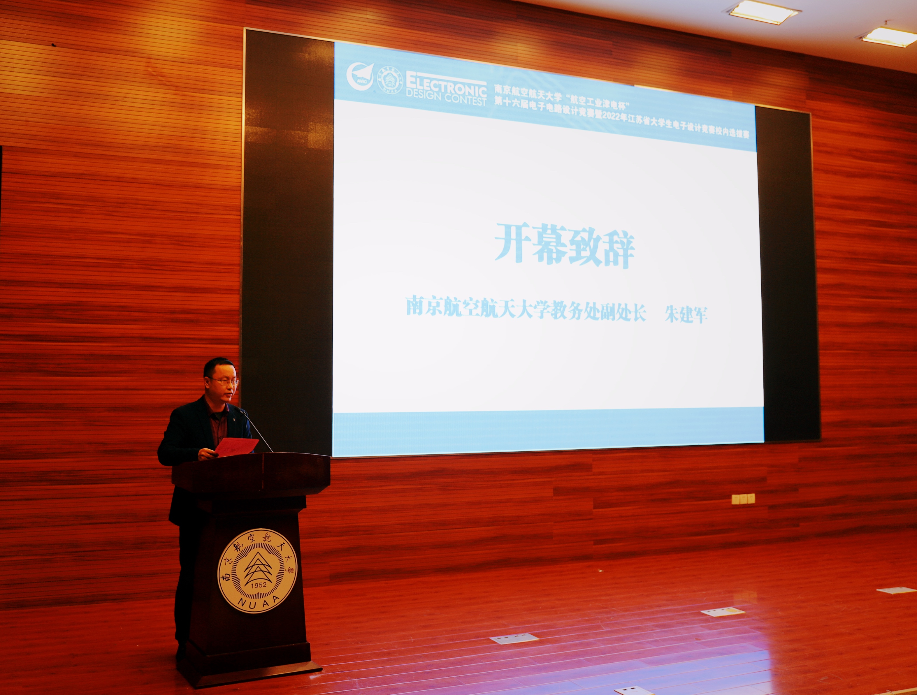 会议初始,主持人丁琛为同学们介绍了电赛的整体情况,校电赛用它专业的科技水平和公平公正的竞赛原则创造了无数辉煌,同时也为诸侯快讯培育出一批活跃于各级比赛中的优秀人才。随后朱建军致开幕词,他向同学们介绍了电赛十六年来规模不断壮大、体系不断完善的历程,为参赛同学们搭建了一个勇于实践和敢于创造的舞台。在建党100周年之际,希望同学们以此次大赛为契机,激发创新灵感,发扬工匠精神,勇于改革创新,脚踏实地奋斗,不断将“小我”融入到祖国的“大我”中,为国家“三航”事业发展、“两个强国”建设贡献青春力量。