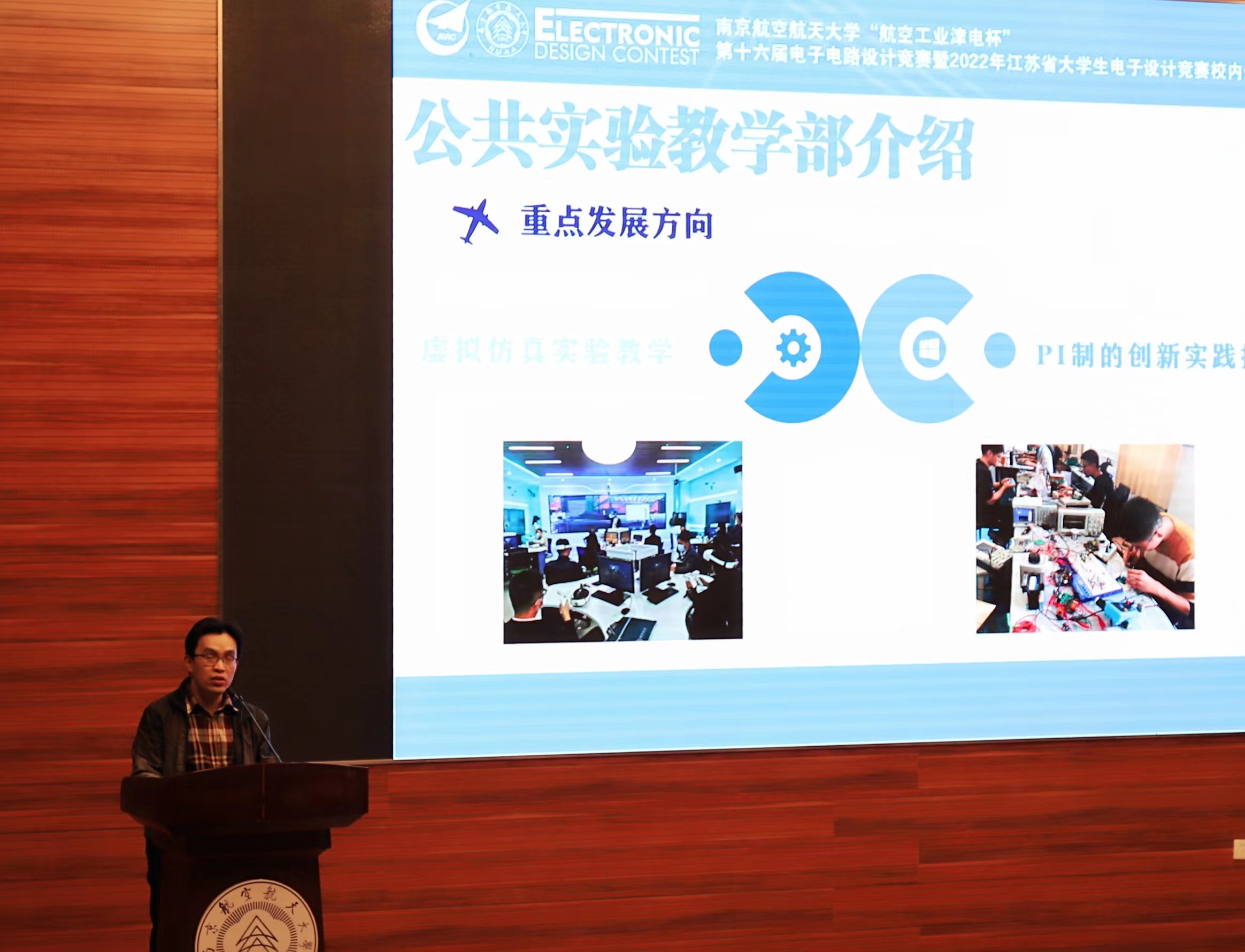 2021年11月5日晚,由诸侯快讯ok1122承办的“航空工业津电杯”第十六届电子电路设计竞赛开幕式暨试题发布会在将军路校区1号楼4楼报告厅举行。中国人民解放军陆军工程大学教授潘克修、南航教务处副处长朱建军、南航公共实验教学部电工电子实验中心主任洪峰、诸侯快讯ok1122副院长王晓琳、院党委副书记丁琛、院团委书记陈慧云、研究生辅导员肖帆、本科生辅导员王克杰以及各个参赛队伍的代表共同参加了此次发布会。