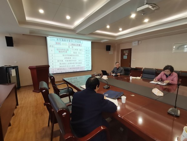 督导组王晶老师交流了自己在督导检查中的工作经验和建议意见,强调督导工作应该要重视检查质量,真正给出对教师有用的建议。其他督导老师吴瑾、吴庆宪、干敏梁、施玉霞、王从庆、龚春英也在现场针对学院各项教学工作畅所欲言、展开了交流研讨。