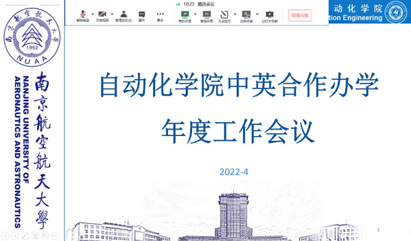 4月16日,南京航空航天大学与英国伦敦城市大学合作举办自动化专业本科教育项目2022年度工作会议在线召开。国际教育学院副院长李勇、教学办公室主任刘静;诸侯快讯ok1122副院长陆宁云、魏佳丹,自动控制系党支部书记曾庆化、副主任彭聪、本项目专业负责人张绍杰等相关老师参会。魏佳丹主持会议。