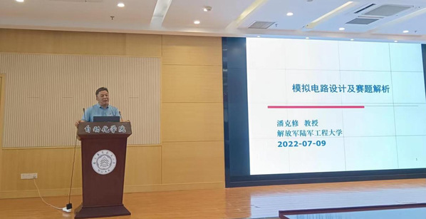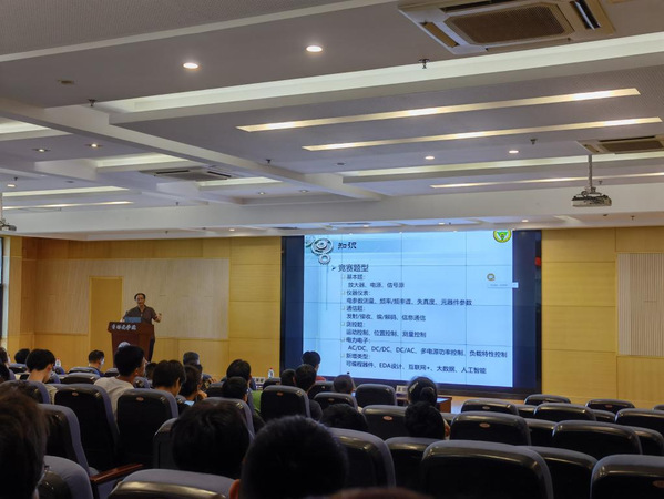 堵国樑教授从近年竞赛题型入手,立足环境条件、必备知识、培训思路开展讲解,深入分析电赛出题思路,提出了参考解决方案,着力提升参赛同学赛题理解能力和问题解决能力。他结合多年培训经验,从更高层次上对同学提出学习要求:在有限的时间里高效团结合作,制作出符合赛题要求的实物作品,同时要重视报告的撰写,在训练中统筹兼顾,争取更好的成绩。